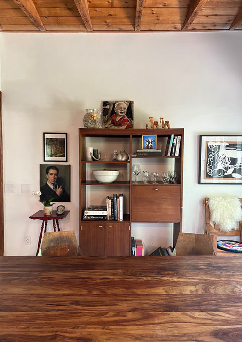 We introduced thoughtful storage elements in the redesign of the living room and entry. Crisp walls highlight the character of the aged pine, while a durable white epoxy floor lends a soft, cloud-like feel to the space. Middle West Studio curated a mix of old and new pieces, focusing on distinctive art objects.